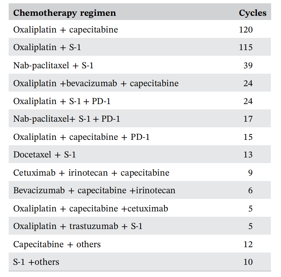 表1.本研究中含口服化疗药物的化疗方案汇总