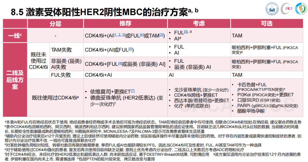1、二线及后线,既往未使用过CDK4/6i,且非甾体(甾体)AI失败的患者“甾体(非甾体)AI”从可选方案调整为考虑方案。