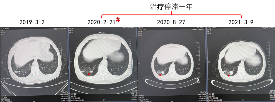 疗效:肺部病灶疾病稳定(4年)。对侧肾上腺病灶部分缓解(4年)。
