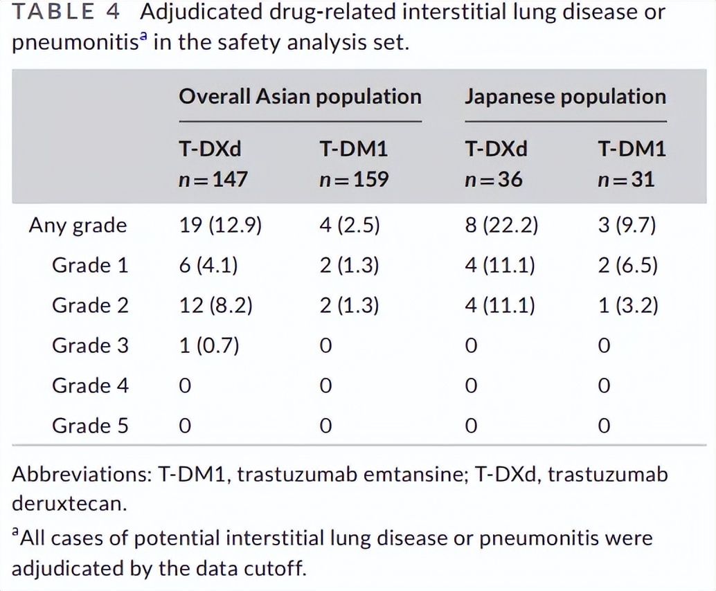 △DESTINY-Breast03研究亚洲人群药物相关ILD/肺炎表现