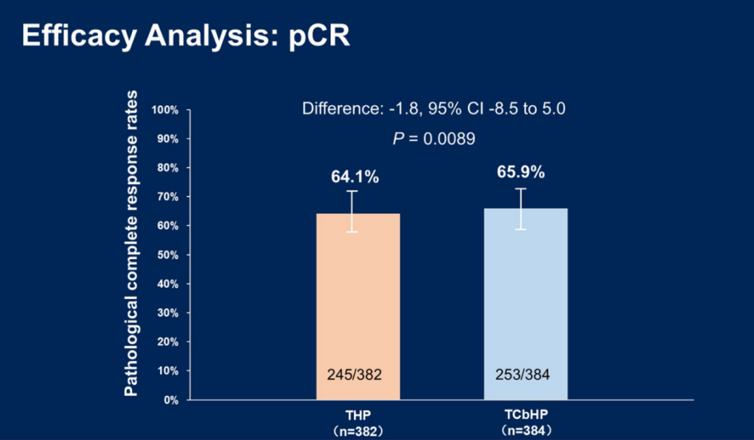 广东省人民医院王坤教授在2025年ASCO大会带来了HER2阳性早期乳腺癌新辅助治疗的neoCARHP研究,结果显示,THP方案pCR率非劣效于TCbHP方案(64.1%vs 65.9%)。目前来看,对于铂类添加与否,临床一直存在争议,最近公布的多项临床研究也证实,“去铂类”其实并不影响患者整体的pCR率,同时又能减少铂类带来的血液学和消化道等不良反应。