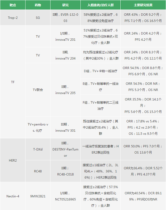 表1.已报道ADC治疗r/mCC的临床研究(非头对头比较,请谨慎解读)