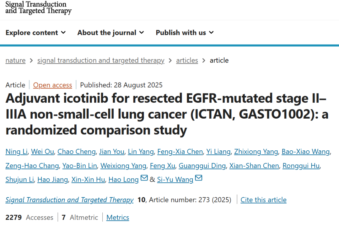 近日,由中山大学孙逸仙纪念医院深汕中心医院王思愚教授牵头开展的多中心、随机、开放标签Ⅲ期临床研究——ICTAN研究(GASTO1002),已于近日在全球权威期刊《Signal Transduction and Targeted Therapy》(STTT,影响因子:52.7)正式全文发表。