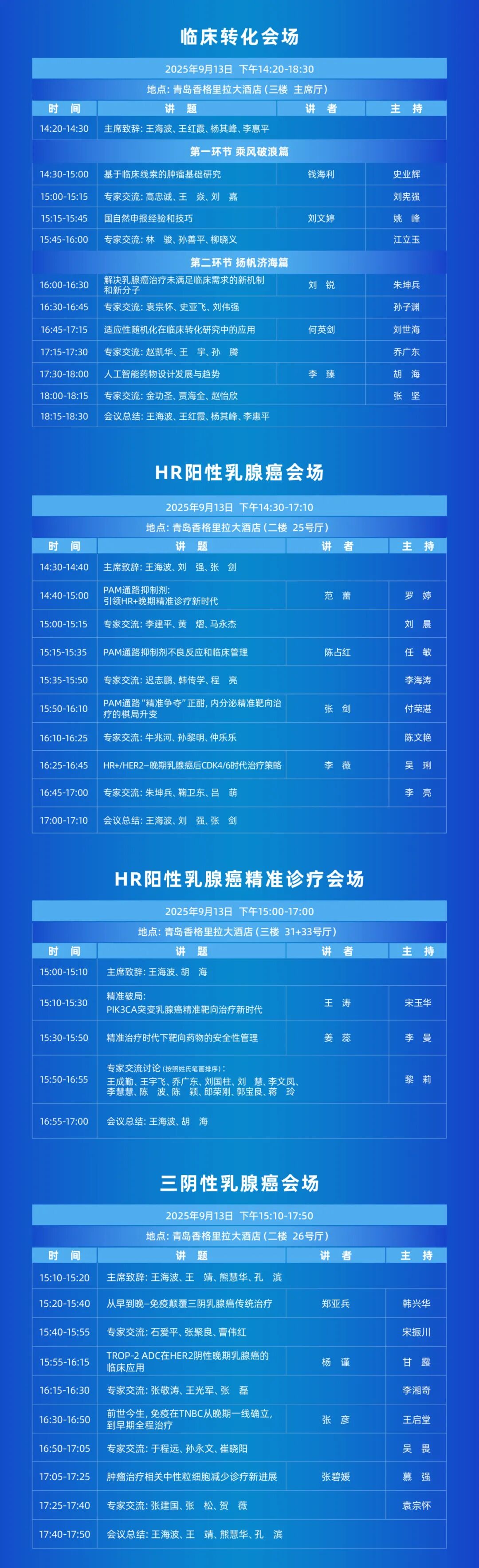 此外,本届大会还特别设置了多个专题会场,包括临床试验会场、HER2阳性与低表达乳腺癌会场、临床转化会场、HR阳性乳腺癌会场、三阴性乳腺癌会场等,旨在加强对中青年医师科研与原创能力的培养。值得一提的是,本届会议与CSCO BC指南巡讲、CBCS&CSOBO主席团巡讲等国内外品牌学术活动联动,进一步拓展了大会的学术辐射力和国际影响力,为乳腺专业同仁搭建了更高水平的交流平台,最终使广大患者受益。