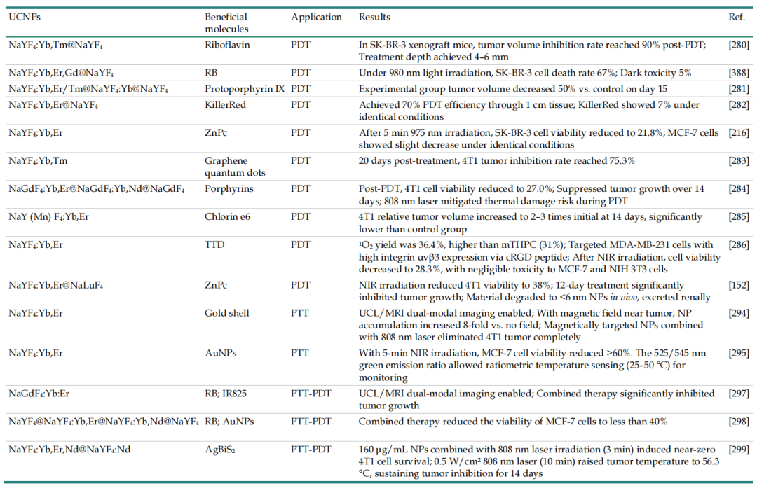 表3.UCNPs在乳腺癌光疗中的应用。