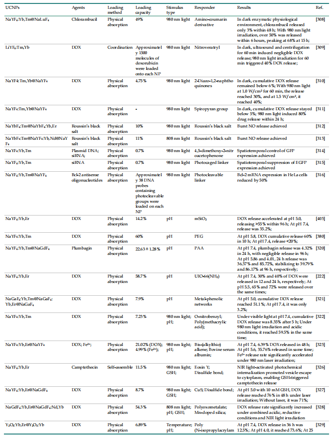 表4.UCNPs在药物/基因智能递送中的应用。