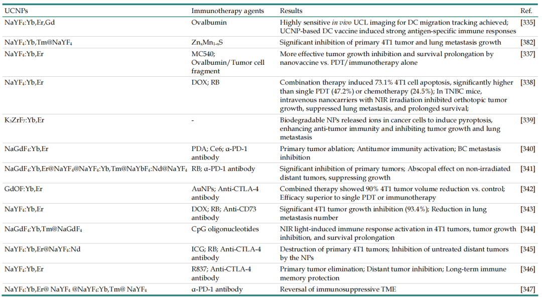 表5.UCNPs在免疫治疗中的应用。