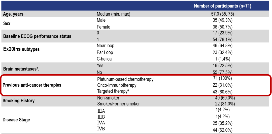 柳影教授:我们知道,EGFR突变是NSCLC中最常见的驱动基因;我国NSCLC患者中的EGFR突变比例约为50%[7]。其中,ex20ins突变是EGFR的第三大突变亚型[6]。这类患者异质性强,预后较差[7]EGFR ex20ins患者从目前的传统化疗、第一代、第二代、其他第三代EGFR酪氨酸激酶抑制剂(TKI)和免疫治疗中的获益有限[2]。目前,EGFR ex20ins患者的治疗仍存在非常大的未被满足的需求[7],包括ORR、PFS、安全性等等不尽如人意,亟需探索新型治疗策略。