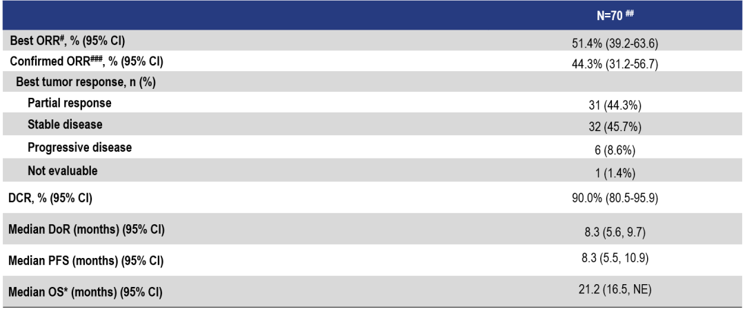 柳影教授:FURMO-003研究是一项Ⅱ期、多中心、开放标签研究,从疗效方面看,伏美替尼展现出的数据非常亮眼,尤其考虑到其所针对的是既往治疗失败的患者群体[6]:伏美替尼治疗的最佳客观缓解率为51.4%,确认的客观缓解率为44.3%[6]这意味着近一半的患者肿瘤显著缩小。