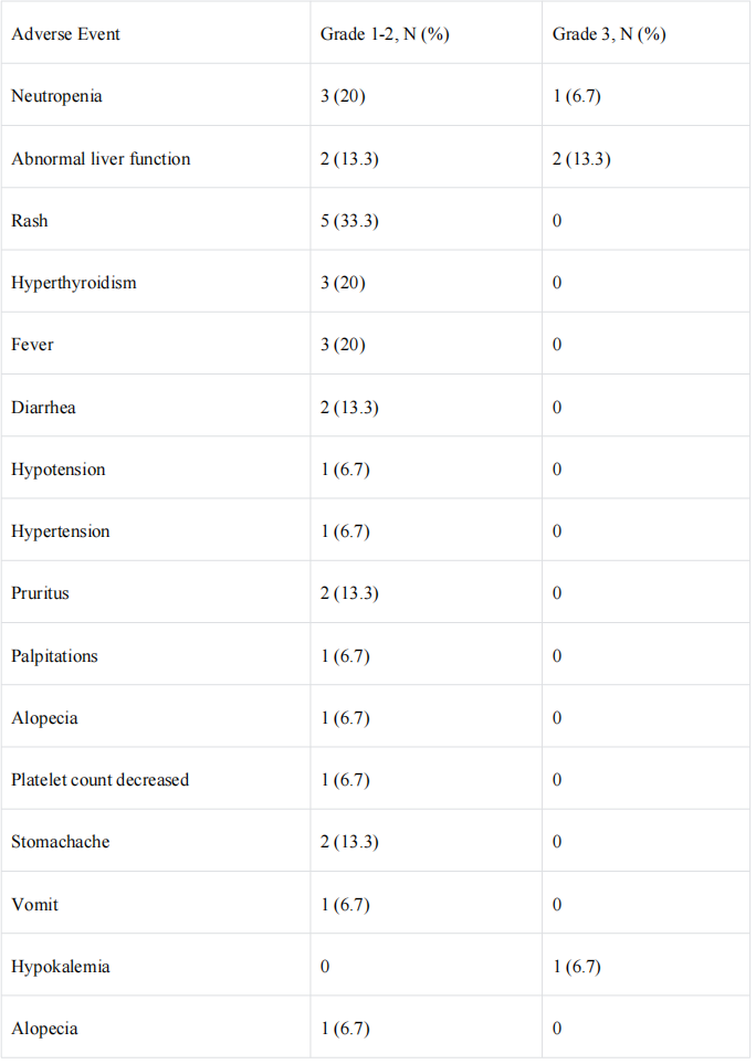 表1.治疗相关不良反应发生情况