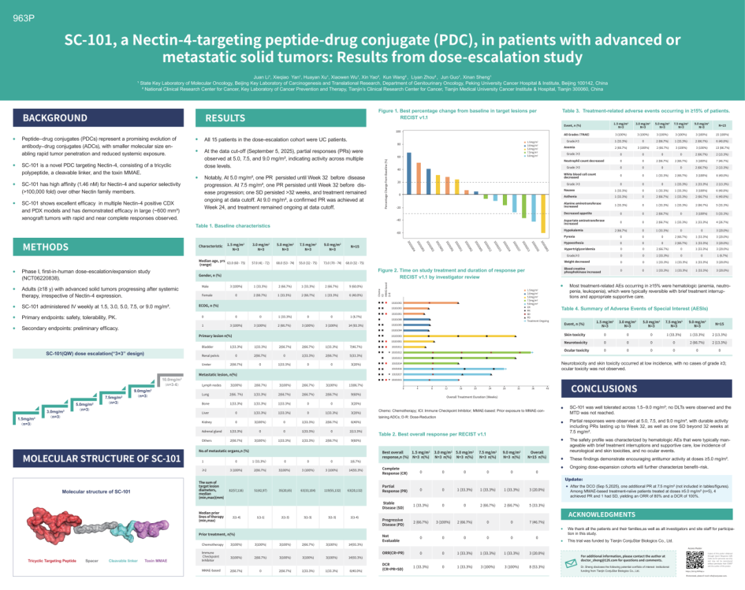 这一结果表明,SC-101不仅具有良好且可管理的安全性特征,也初步展现出积极的抗肿瘤活性,为进一步剂量扩展研究奠定了基础。