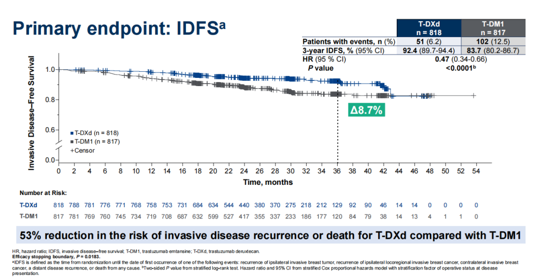 △DESTINY-Breast05研究患者主要终点IDFS和关键次要终点DFS