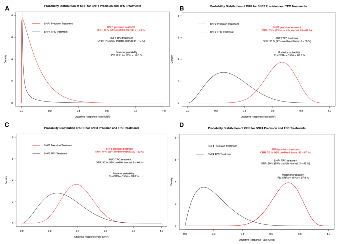 SNF1(A)、SNF2(B)、SNF3(C)、SNF4(D)ORR后验概率分布情况