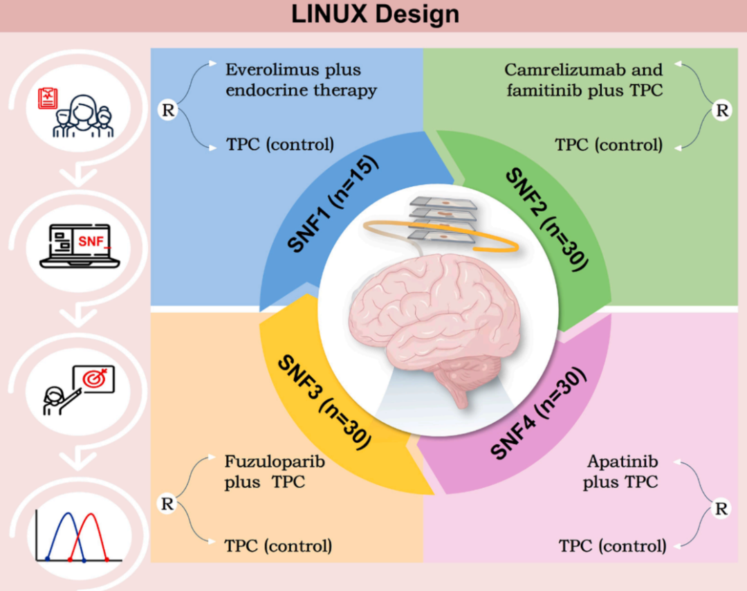 编者按:2025年12月4日,由复旦大学附属肿瘤医院邵志敏教授团队领衔,依托乳腺癌精准治疗协作组(BCTOP),一项名为LINUX(BCTOP-L-M05,NCT05594095)的多中心、随机、对照Ⅱ期平台研究发表于顶级期刊《肿瘤细胞》(Cancer Cell)(IF=44.5)。该研究基于“复旦腔面四分型”(SNF分型)的精准治疗策略,首次在临床层面验证了人工智能辅助SNF分型系统在CDK4/6抑制剂(CDK4/6i)耐药的激素受体阳性(HR+)、人表皮生长因子受体2阴性(HER2-)晚期乳腺癌患者中的精准治疗价值。