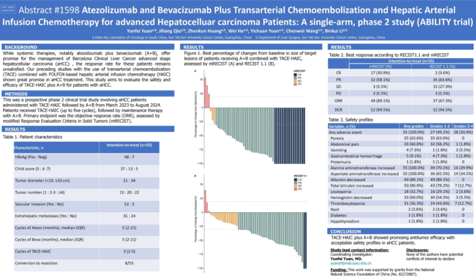 [1].Yunfei Yuan,et al.Atezolizumab and Bevacizumab Plus Transarterial chemoembolization and Hepatic ArterialInfusion chemotherapy for advanced Hepatocelluar carcinoma Patients:A single-arm,phase 2 study(ABlLiTY trial).2025 ESMO Abstract#1598