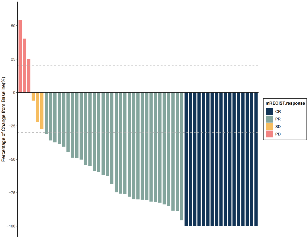 Atezo-Bev联合TACE-HAIC治疗的患者靶病灶大小相对于基线的最佳变化百分比