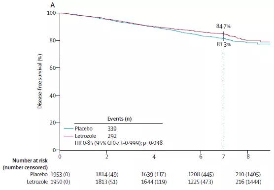 ▲图1. NSABP B-42研究的DFS结果(Lancet Oncol; Oct. 30, 2018)