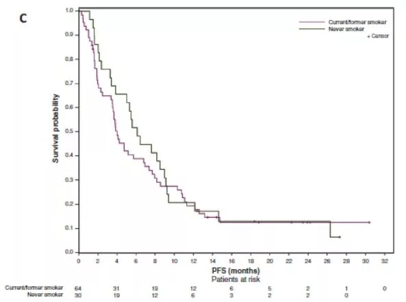 未观察到吸烟者和非吸烟者之间的PFS存在差异(图4)。