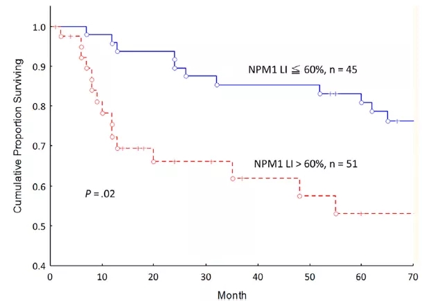 图2:NPM1高表达(Li>60%)是OSCC预后不良的独立指标