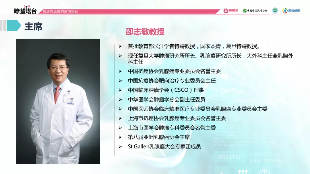 2020年5月23日(周六)19:00-20:00,瞭望塔台隆重推出5位大咖专家参与的网络研讨会,主题为“聚焦乳腺癌患者长期生存管理——复旦乳腺癌十五年生存报告和辅助OFS最小成本分析”,复旦大学附属肿瘤医院邵志敏教授和团队4位成员对复旦大学附属肿瘤医院乳腺癌生存数据以及卵巢功能抑制(OFS)的应用价值和方案进行了解读。