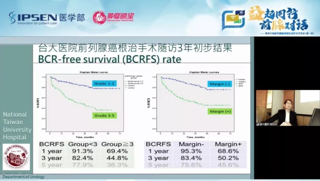 黄昭渊教授分享了中国台湾大学医学院附设医院(以下简称“台大医院”)前列腺癌的“3 RIGHT”原则——The right treatment to the right patient at the right time,即在正确的时间,给正确的患者,予以正确的治疗。在中国台湾,前列腺癌在男性新发癌症中排第5位,诊断中位年龄73岁,34%初诊晚期;前列腺癌死亡率在男性癌症中排第7位,死亡中位年龄为81岁[1,2]。前列腺癌根治术是治疗局限性前列腺癌的重要方式,而在台大医院,多采用机器人辅助前列腺癌根治术(RaRP)。台大医院RaRP对适应症进行严格把控:包括年龄<70岁,预期寿命>10年;中高危前列腺癌;无其他严重合并症。