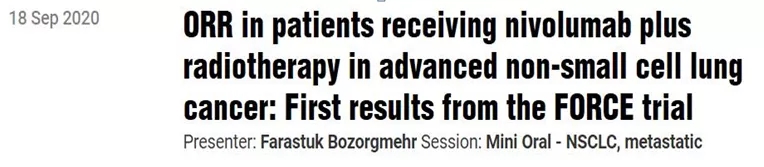 Nivolumab联合放疗在晚期非小细胞肺癌中的ORR:FORCE研究的首次结果分析(摘要号:LBA58)