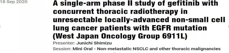 吉非替尼联合同步胸部放疗在局部晚期或转移性非小细胞肺癌患者的疗效及安全性:一项单臂、II期临床研究(摘要号:1236MO)