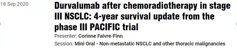 III期非小细胞肺癌放化疗后,Durvalumab维持治疗的疗效:来自III期PACIFIC研究的4年生存数据(摘要号:LBA49)
