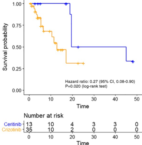 图1.台湾回顾性研究一线克唑替尼vs塞瑞替尼PFS