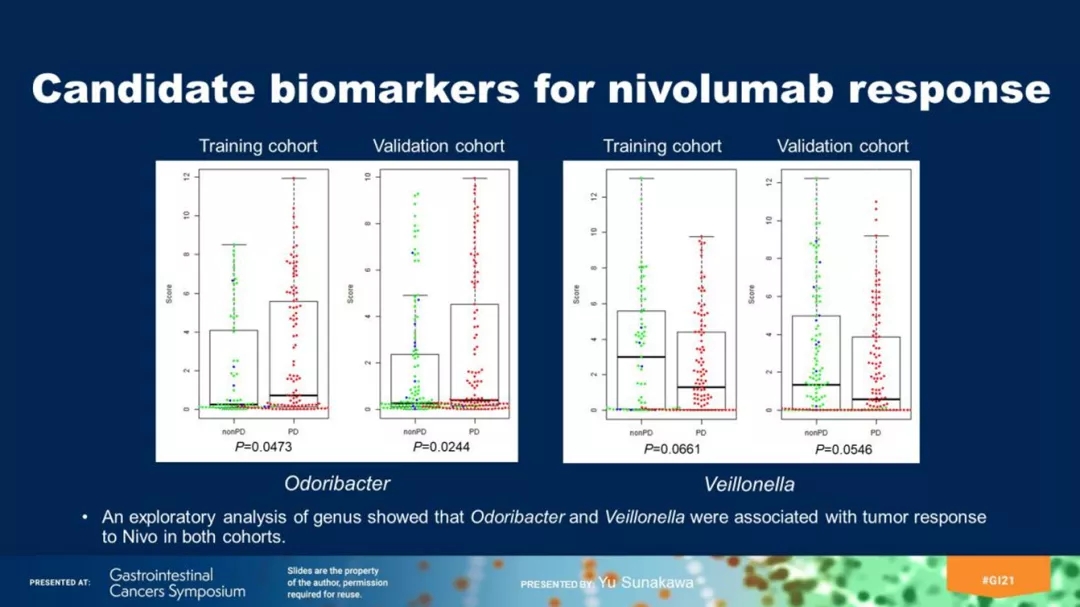 Yu Sunakawa, et al. Genomic pathway of gut microbiome to predict efficacy of nivolumab in advanced gastric cancer: DELIVER trial (JACCRO GC-08). ASCO GI. Jan 15-17, 2021. ABSTRACT 161.