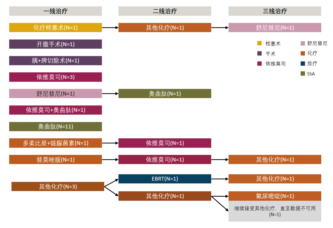 [1] Benson III A B, Broder M S, Cai B, et al. Real-world treatment patterns of gastrointestinal neuroendocrine tumors: A claims database analysis[J]. World journal of gastroenterology, 2017, 23(33): 6128.[2] Kulke M H, Benson A B, Dasari A, et al. Real‐World Treatment Patterns and Clinical Outcomes in Advanced Gastrointestinal Neuroendocrine Tumors (GI NET): A Multicenter Retrospective Chart Review Study[J]. The oncologist, 2019, 24(8): 1056-1065.[3] Herring M, Huynh L, Duh M S, et al. Real-world treatment patterns in advanced pancreatic neuroendocrine tumors in the era of targeted therapy: perspectives from an academic tertiary center and community oncology practices[J]. Medical Oncology, 2017, 34(5): 88.