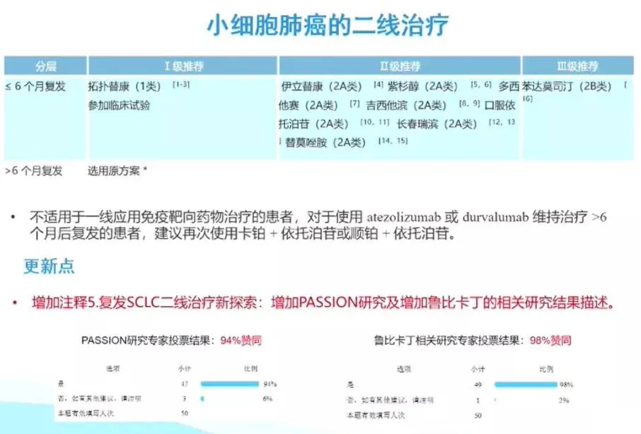 增加注释5:复发SCLC二线治疗新探索,增加了PASSION研究及增加鲁比卡丁的相关研究的结果描述。
