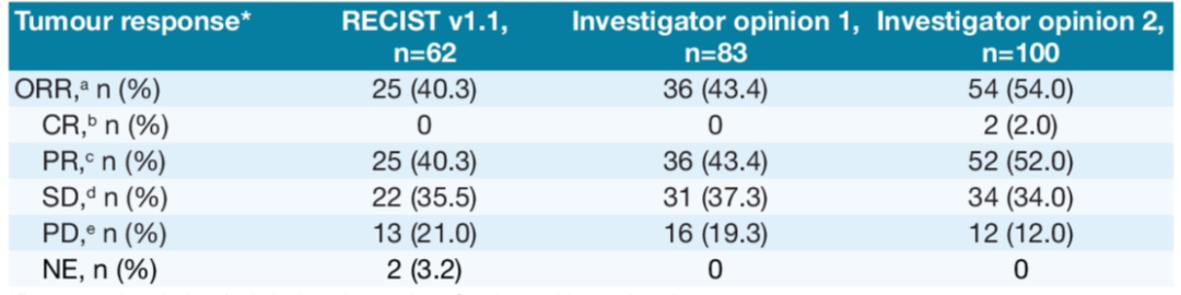 表1. 肿瘤最佳治疗反应