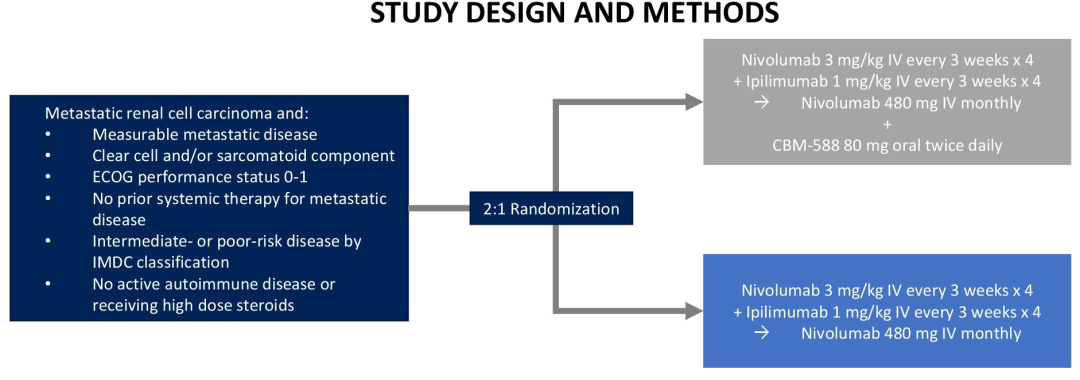 Abstract #4513:首个比较nivolumab/ipilimumab联合或不联合CBM-588治疗转移性肾细胞癌患者的IB期随机临床研究的结果