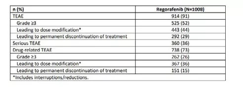 表1、瑞戈非尼治疗uHCC患者相关TEAEs的发生率