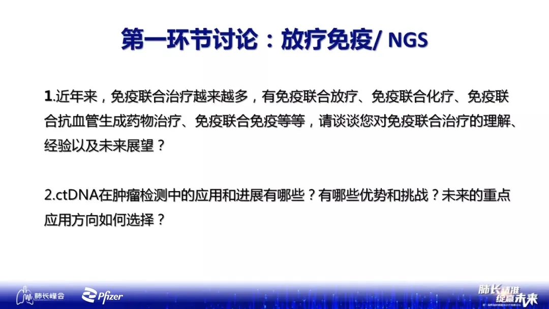 讨论嘉宾分析了ctDNA评估MRD对于监测肺癌复发转移、预测免疫辅助治疗时长和局部晚期NSCLC免疫维持治疗时长、指导个体化决策等方面的价值。对于ctDNA的未来应用,多位专家期待NGS在免疫治疗中大展身手,比如继续明确多重生物标志物与预后的关系,帮助患者在免疫单药以及各种免疫联合治疗方案中进行选择,评估新辅助免疫治疗后达到pCR的部分患者能否免于手术,建立基于多重分子标志物的预测模型,为不良反应预测提供有益的指导。