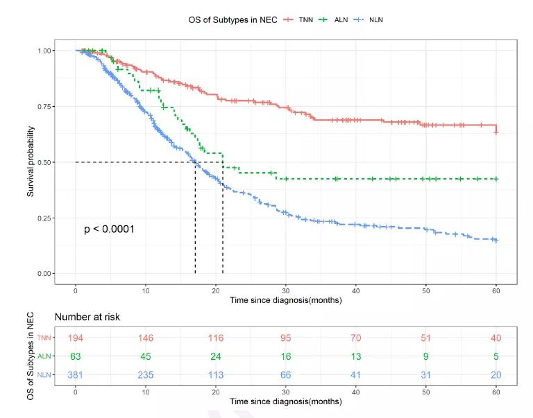 研究共入组640例GEP-NEC患者。NSE、CEA和CA199分别在59.5%、28.5%和21.3%的人群中升高。NSE越高,中位总生存期(OS)越差(17.0个月vs未达到,风险比 [HR] = 2.77 (2.06,3.73),P < 0.001),CEA和CA199越高的患者也是如此。多因素分析证实NSE和CA199与OS独立相关。基线NSE水平和NSE缓解可以预测一线依托泊苷加顺铂(EP)治疗患者的OS和反应。此外,我们结合NSE/CEA/CA199将GEP-NEC分为新的亚组,即腺癌样NEC(ALN)、神经内分泌样NEC(NLN)和三正常NEC(TNN)。三组患者具有独特的临床病理学特征和预后(21.0个月vs 17.1个月vs未达到,P < 0.001)。EP方案仍然是NLN/TNN的优先治疗选择,而ALN倾向于“腺癌样化疗”。