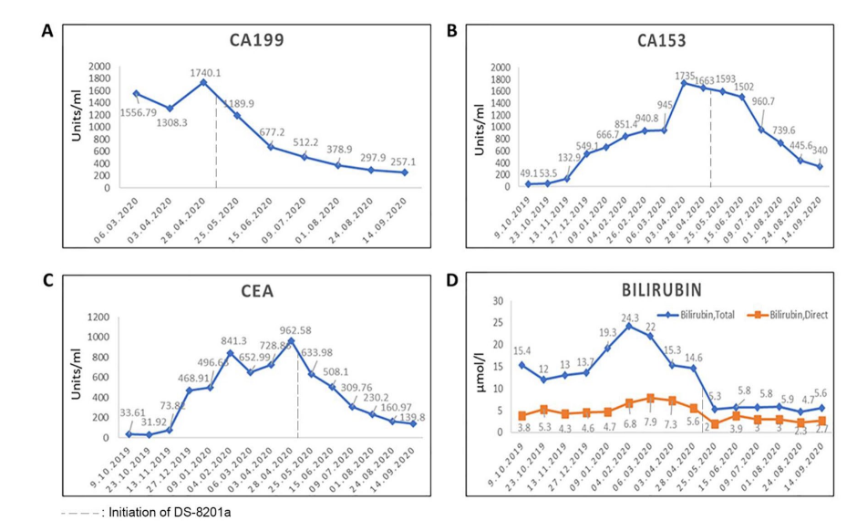 图2. 肿瘤标志物和胆红素的变化。