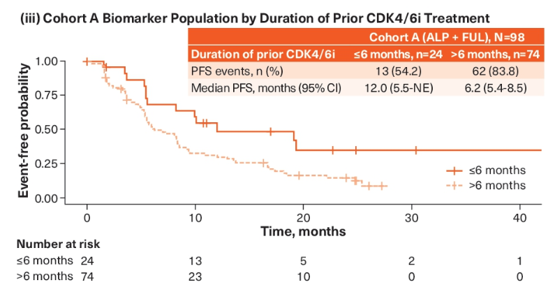 BYLieve研究:根据既往CDK4/6抑制剂治疗的持续时间,对Alpelisib联合内分泌治疗HR阳性/HER2阴性、PIK3CA突变的晚期乳腺癌患者的基线生物标志物和无进展生存期的分析