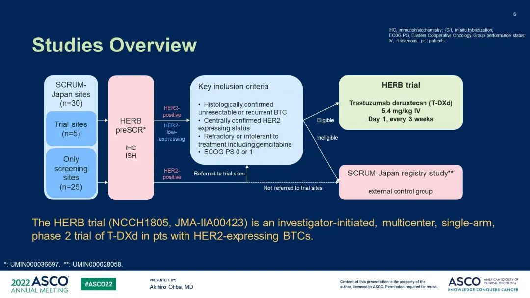[1]Akihiro Ohba, et al. Trastuzumab deruxtecan (T-DXd; DS-8201) in patients (pts) with HER2-expressing unresectable or recurrent biliary tract cancer (BTC): An investigator-initiated multicenter phase 2 study (HERB trial). J Clin Oncol 40, 2022 (suppl 16; abstr 4006). DOI:10.1200/JCO.2022.40.16_suppl.4006