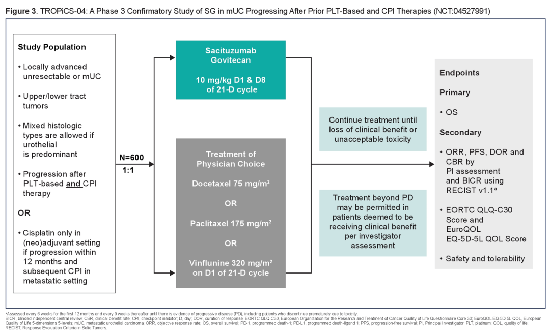 [10]TROPiCS-04:Study of Sacituzumab govitecan (SG) in patients (pts) with locally advanced (LA) unresectable or metastatic urothelial cancer (mUC) that has progressed after prior platinum (PLT) and checkpoint inhibitor (CPI) therapy, J Clin Oncol 40, 2022 (suppl 6; abstr TPS582)