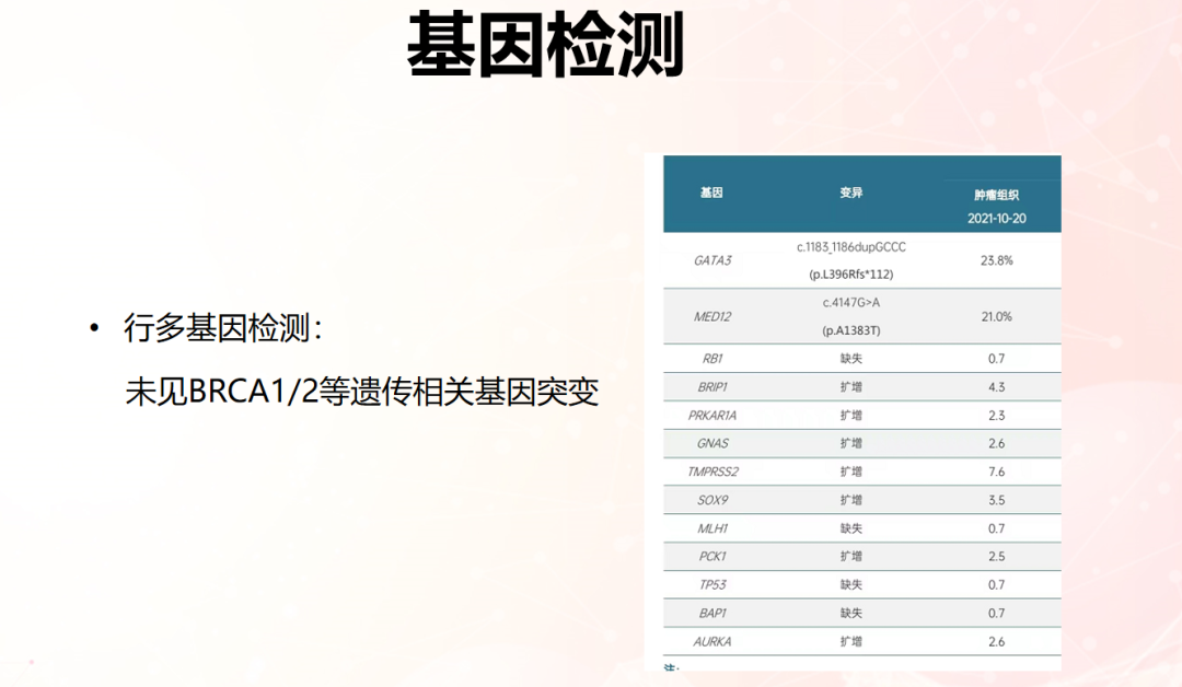 龚畅教授:对于这个问题,答案是非常肯定的。因为这个患者是一个年轻的首诊双侧乳腺癌的患者,仅凭这两个因素,我们就认为她的遗传易感基因突变风险是特别大的。虽然BRCA1/2基因在乳腺癌和卵巢癌中突变频率最高,但亚洲人群的BRCA1/2基因突变频率没有欧美人群那么高,所以我建议该患者必须行含BRCA1/2基因在内的多基因检测,包括HRR和HRD(同源重组缺陷)相关的基因。
