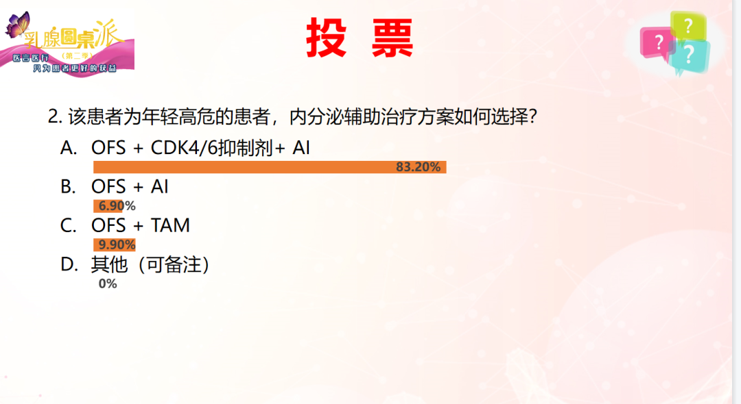网上医生投票结果揭晓:绝大多数网上医生投票选择OFS联合CDK4/6抑制剂联合AI。