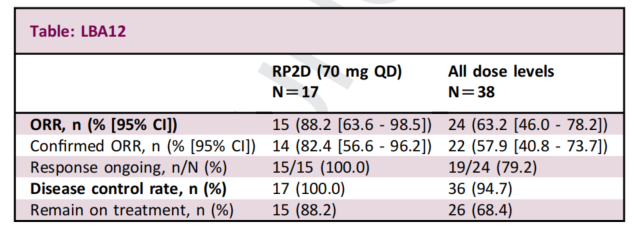表2.RP2D和所有剂量水平的疗效