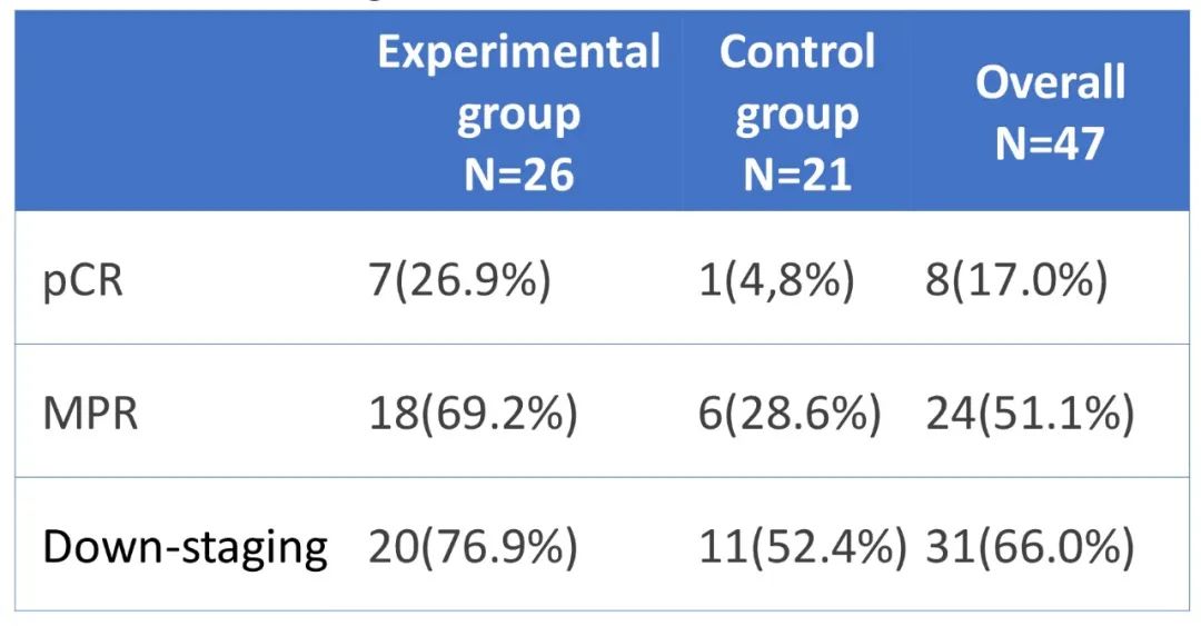 主要终点是pCR率。次要终点为MPR率、降期率、3年DFS率、5年OS率、安全性。该研究已在Clinicaltrials.gov网站登记:NCT04982939。