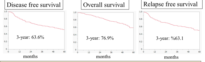 该研究于2013年至2021年间进行,招募了214名患有3期肠癌的患者(99名男性、115名女性、80~101岁)(27例3A、158例3B和29例3C)。共有41名患者不符合化疗条件。在其余患者中,65例接受辅助化疗,108例未接受辅助化疗。3年无病生存率为63.6%,3年总生存率为76.9%,3年无复发生存率为63.1%(图2)。36名患者死于结直肠癌,30名患者死于其他原因。在长达42.5个月的随访期间,58例复发,17例观察到继发性癌症。关于严重不良事件的报告很少,但一些停止治疗的病例是由于不良事件。