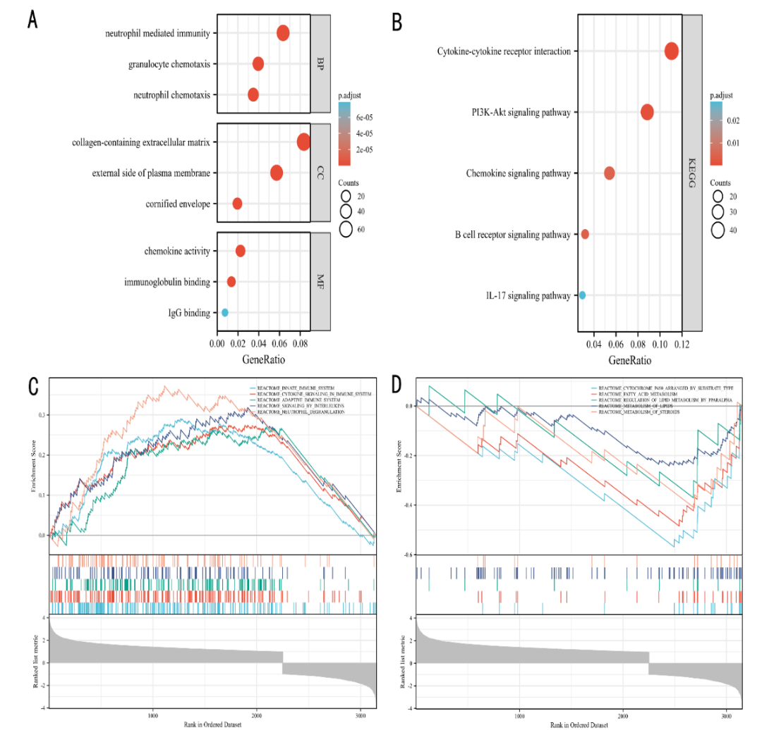 高MRLS组主要富集免疫相关通路,如先天免疫系统、免疫系统中的细胞因子信号通路、适应性免疫系统通路等(图3)。