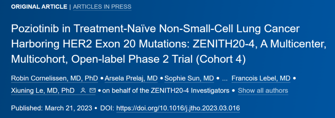波奇替尼一线治疗HER-2第20外显子插入NSCLC患者的疗效及安全性:ZENITH20-4研究