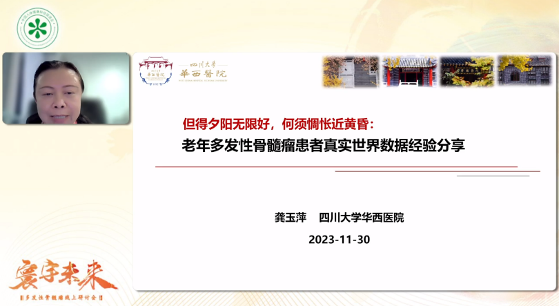 2023年11月30日,“寰宇未来—多发性骨髓瘤线上研讨会”在云端成功召开。本期会议在大会主席浙江大学医学院附属第一医院蔡真教授主持下,多位浆细胞疾病领域国内和国外专家共聚云端,探讨多发性骨髓瘤(MM)治疗领域的热点话题,结合蛋白酶体抑制剂(PI)类药物的真实世界疗效及多项研究更新,深入解析如何在MM治疗治疗中“排兵布阵”,并针对临床医生最关心的问题开展了深入交流。