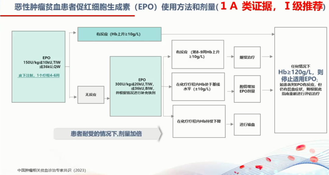 此外,指南也对恶性肿瘤贫血患者促红细胞生成素(EPO)的使用方法和剂量进行更新,并明确讨论了治疗起始时机、目标值和适应症等问题,但也需要注意血栓和可能的肿瘤进展风险。目标Hb水平是各项指南的关键指导内容,同时也限制了EPO的适用人群。
